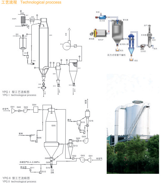 簡述:壓力式噴霧干燥造粒機是采用壓力式霧化器借助隔膜泵的壓力將溶液或漿狀的物料霧化成